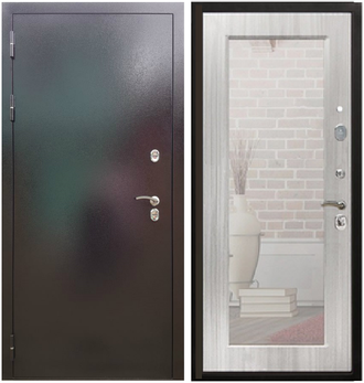 Готовая дверь с терморазрывом Армада Термо 3К Молоток коричневый / Зеркало ФЛЗ Пастораль Сандал Белый