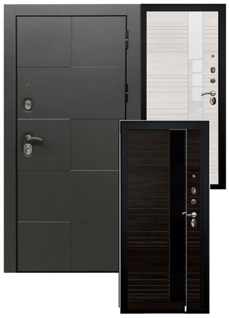 Дверь SD-Prof АРМАДА Графит/ Беленый дуб стекло белое, Венге стекло черное