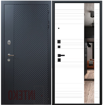 Стальная дверь СПЕКТРА 3к черный кварц / СИТИ зеркало белый матовый