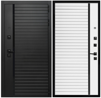 Стальная дверь АГАТ ПРО (Черный кварц,черное стекло) Агат Белый мат+вставка черное стекло