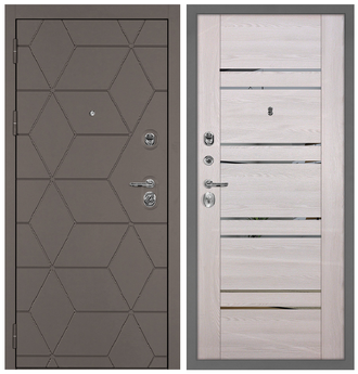 Входная металлическая дверь сб ТЕТРА -181 Коричнево-серый / Ривьера крем вставки зеркало