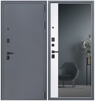 Надёжная входная дверь с зеркалом для квартиры, дома с тёплым тамбуром или офиса: защищает от шума и холода, не боится взлома, устойчива к износу. Элегантный вид внутри и снаружи. Доступна под индивидуальные пожелания.