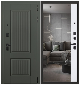 Стальная дверь СКАНДИ "Scandi" олива с зеркалом