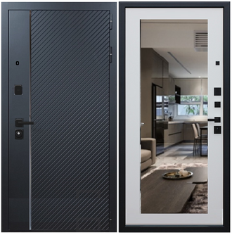Дверь ГРАФ черный кварц с молдингом / Зеркало Пастораль белый матовый