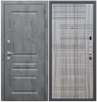 многолетний опыт производства стальных дверей. Наружный лист отделан панелью МДФ в строгом цвете «бетон темный»,