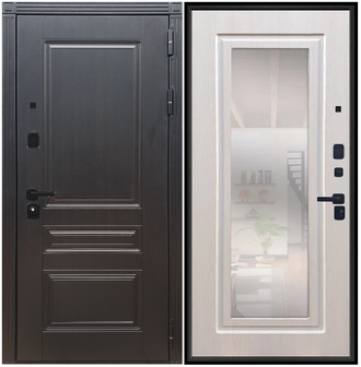 Стальная Дверь МЕГАПОЛИС 3к / Зеркало ФЛЗ-120 Сандал светлый
